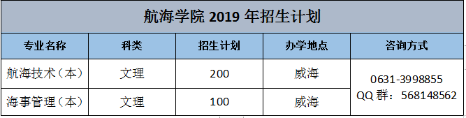 航海学院2019年各专业招生计划