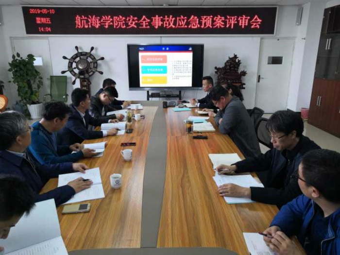 航海学院安全事故应急预案》评审会。会议由航海学院副院长周兆欣主持,航海学院党总支书记李西田、威海校区后勤保障处、航海学院安全工作领导小组成员及相关专家出席了会议。