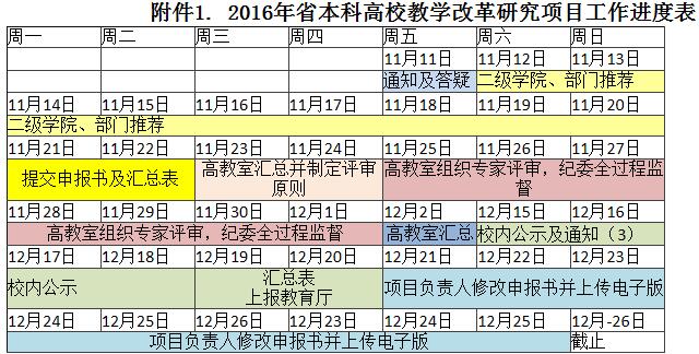 附件1. 2016年省本科高校教学改革研究项目工作进度表