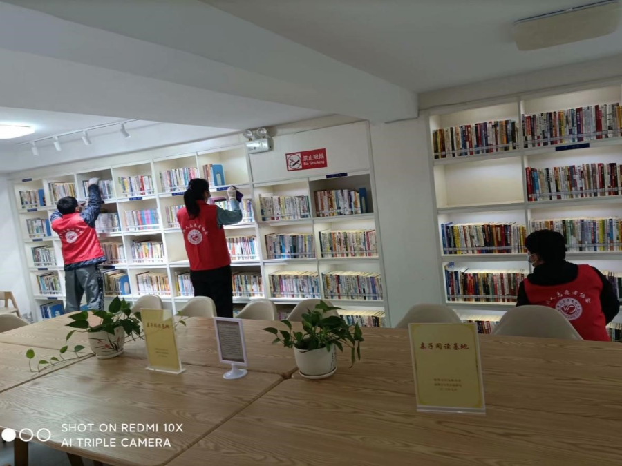 新时代文明实践志愿服务队组织十余名志愿者前往望岛城市书屋进行开展整理城市书屋志愿活动。他们有条不紊地进行着自己的整理打扫,使书屋焕然一新,以崭新的面貌等待读者的光临。志愿者们用自己辛勤的奉献,为前来书屋的阅读者们营造出了一个洁净卫生的阅读环境,展现出当代大学生的志愿者风采,积极引导更多人走向书屋,走向书香。