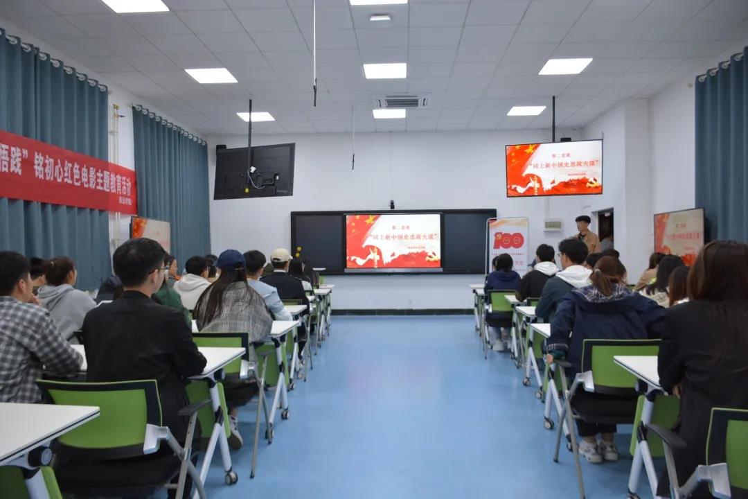师生通过线上线下途径共同收看由社科司与人民网联合举办“同上四史思政大课”第二课新中国史大课。