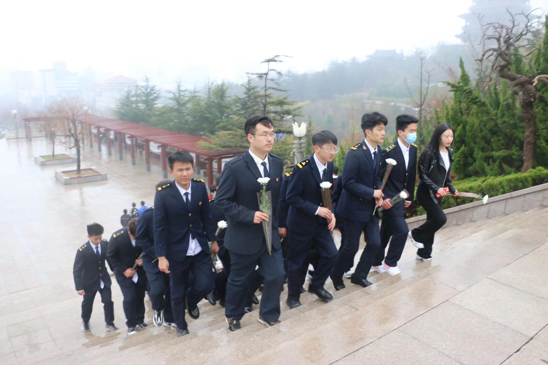 组织学生党员、新时代文明实践志愿者赴威海市烈士陵园开展“学党史迎建党百年,忆先烈传红色基因”清明节主题教育。