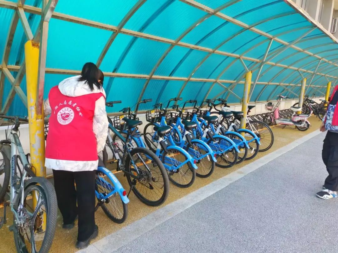 针对校园内自行车乱停乱放造成的道路堵塞问题,志愿者们化身校园秩序的“引导员”,对宿舍楼下影响安全消防通道的自行车进行统一规范摆放,并引导同学们规范停放单车,自觉遵守交通规则。在志愿者们的努力下,消除了校园安全隐患,营造了和谐有序的校园环境。