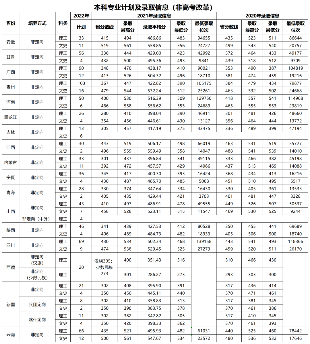 4.非改革省份招生计划及往年录取情况