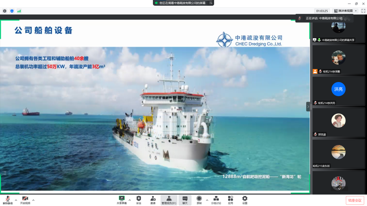 通过腾讯会议召开中港疏浚有限公司线上招聘宣讲会。本次线上宣讲会主要就企业概况、招聘专业、招聘要求等几个方面展开,为2023届毕业生提供咨询和选择。