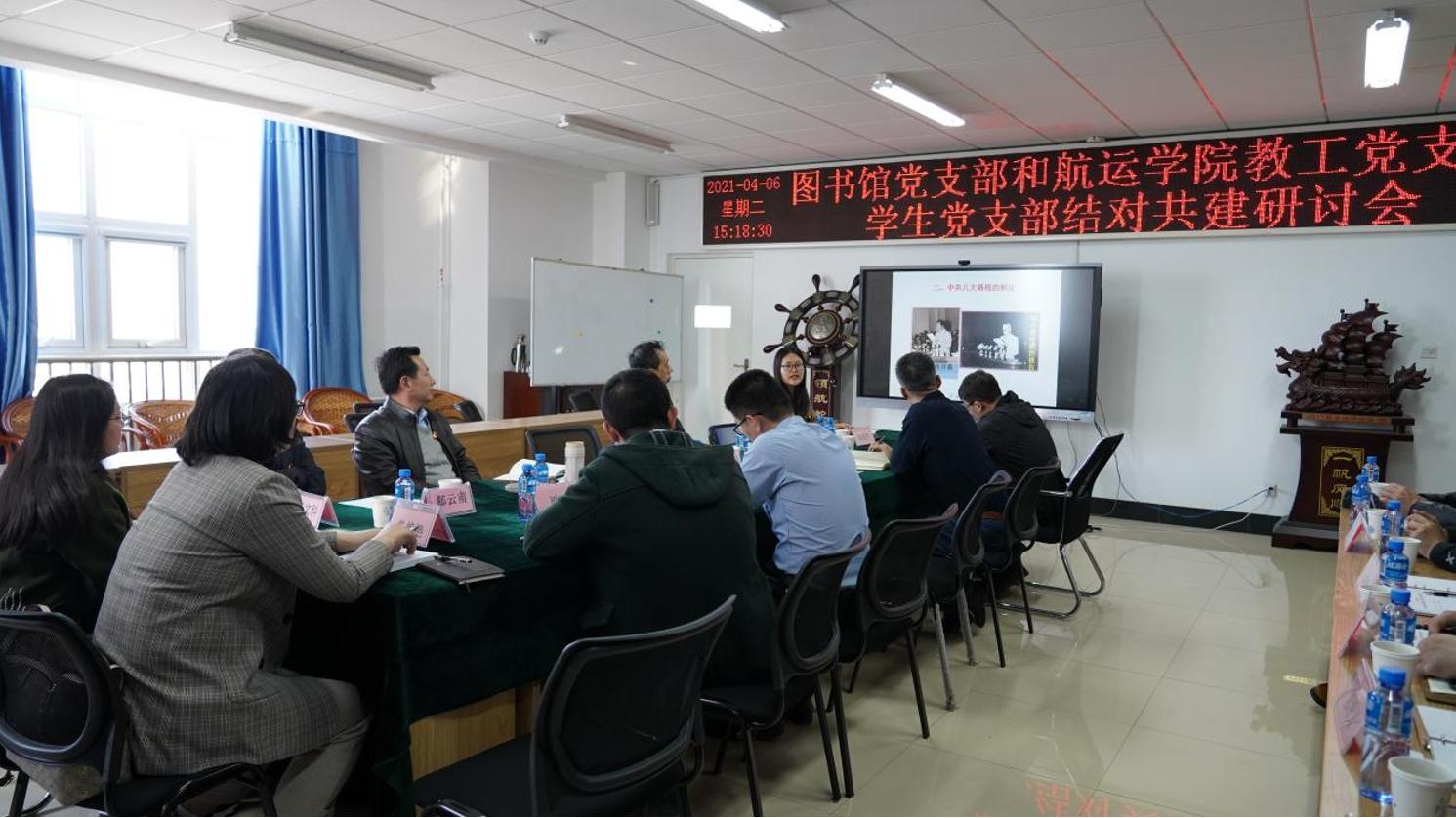分党委及教工、学生党支部基本情况,图书馆党支部与教工一支部、教工二支部和学生一支部共同签署了共建协议书。随后,由威海校区基础教学部孙连芹老师为与会全体党员上了一堂《社会主义建设道路的初步探索》的党史讲座,双方就党课内容进行了学习讨论,并就支部建设、支部活动、共建思路、党史学习、志愿服务等方面进行了深入研讨,明确了“优势互补、资源共享、相互促进、共同提高”的共建目标。研讨会上,双方还就动漫花园