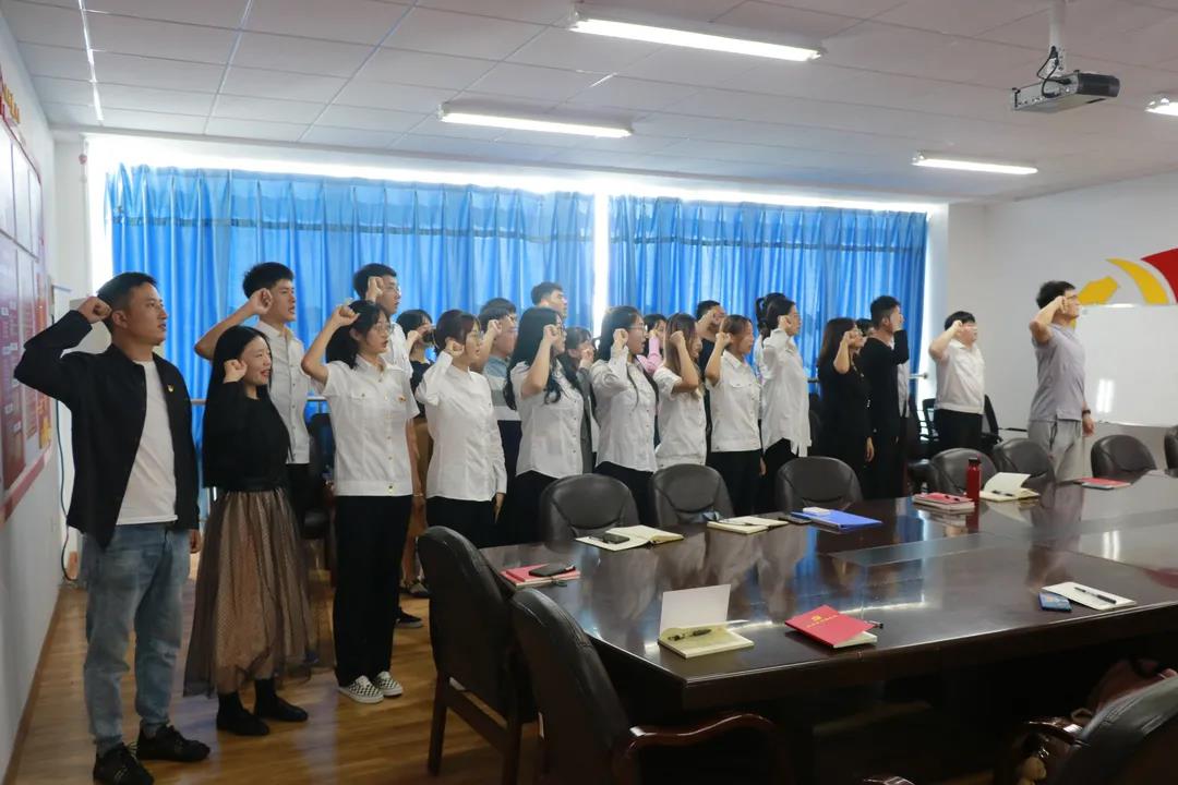 随后,与会党员在红色的党旗下,重温入党誓词,铭记使命担当。