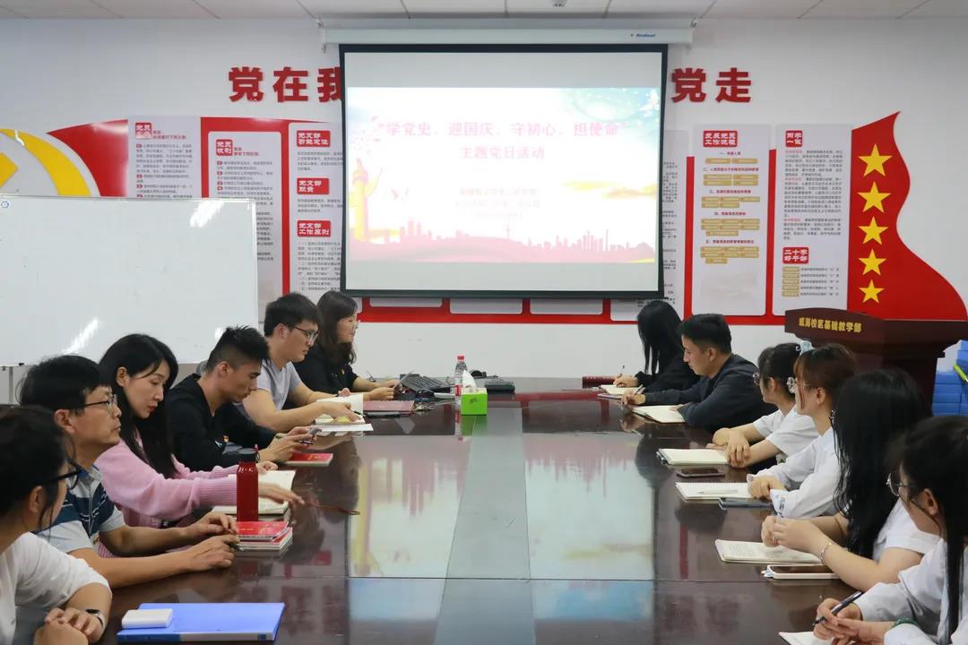 学生第三党支部与共建支部基础教学部第二党支部在教学楼A405会议室,举办“学党史,迎国庆,守初心,担使命”主题党日活动。两个结对支部全体党员参加了此次主题党日教育活动。