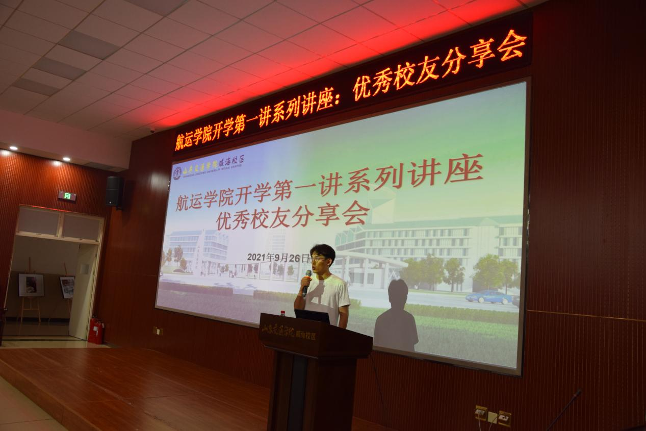 师生开展以“老刘说船长”为题的专题讲座。刘船长从个人航海经历讲起,介绍了海员的生活、航海的工作环境、航海文化的习俗。2019届优秀毕业生郑国梁在威海校区第二报告厅作“优秀校友分享会专题讲座”。郑国梁表达了对母校和老师们辛勤培养的感激之情,接着从成长经历、心得感悟、几点建议三个方面帮助师弟师妹们了解航海类专业知识的实际应用,更加熟悉未来就业环境,做好职业发展规划。