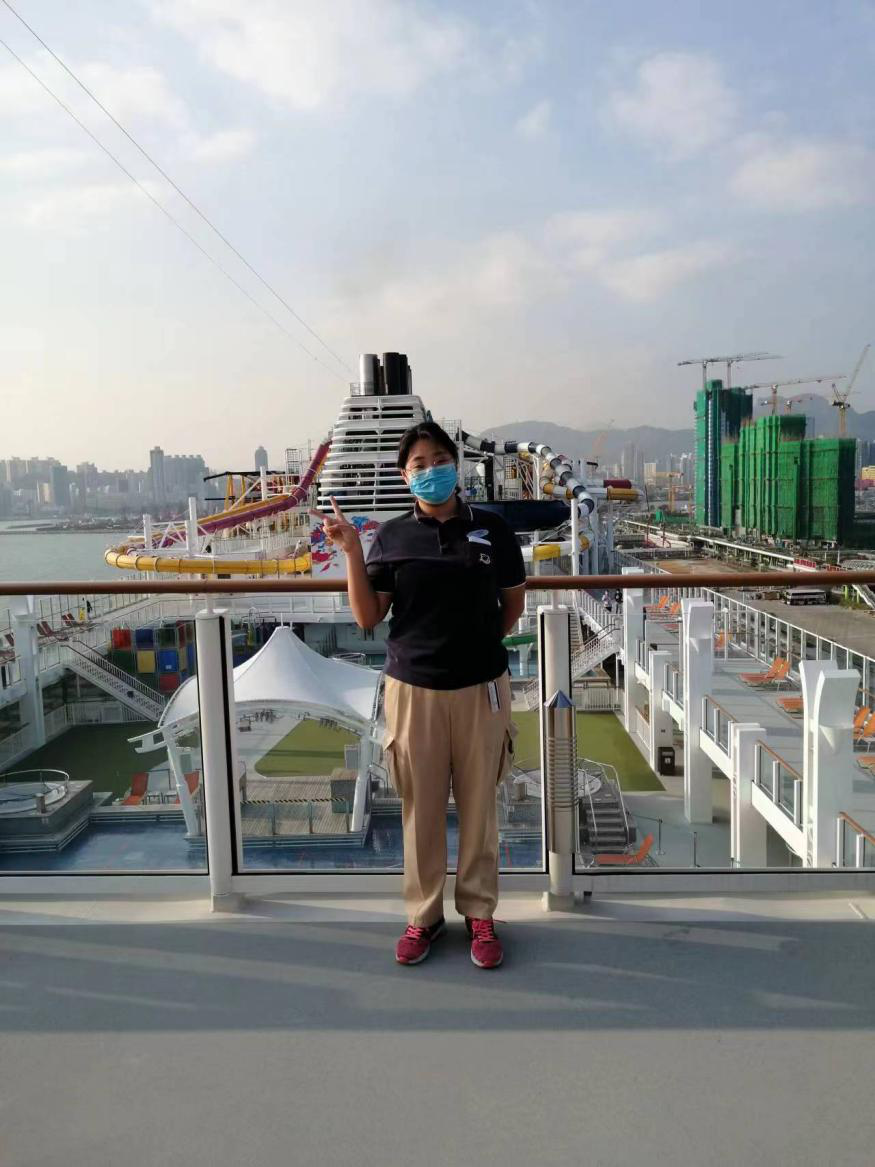 王慧,女,我校船舶电子电气工程专业17级学生。2021年毕业后开始作为实习生从事豪华邮轮船舶电气工程工作。