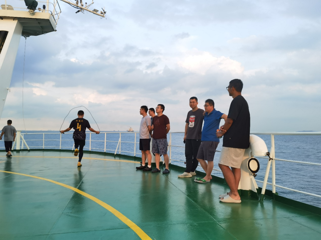 举行趣味比赛时,各位领导及老师们和其他船队员一块积极参加比赛,比赛中,各种姿势让人捧腹大笑,给船队员们带来了很多欢乐!船上的健身房里总是充满了健身、唱歌、跳操的身影。闲暇时光,海况合适,船队员们纷纷到甲板上钓鱼,好不惬意。