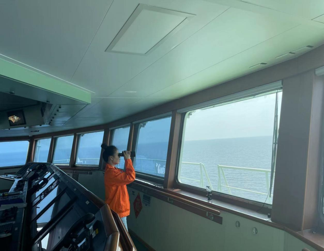 作为一名航海技术专业刚毕业的大学生,“向阳红01”船是我踏上的第一条科考船,实习三副也是我人生的第一份工作。2021年10月19号,怀揣着兴奋与好奇的心情,来到了青岛这座美丽的海滨城市。不得不说,因缘际会的选择了这个专业,却因为对它的逐渐了解,变得越来越热爱了。大学期间专业课知识的学习,授课老师的精彩讲解,上船后船长、轮机长及各位有丰富航海经验的船员们对他们既辛苦又充满乐趣的海上工作和生活经历的介绍,都让我对海洋科考、船舶驾驶产生了浓厚的兴趣,对海上的实际工作和生活有了更多的向往。然而,大学期间就了解到这个专业很不适合女生,对女生来说,船上环境和工作条件比较艰苦,对女生生理和心理都是很大的考验。毕业之际,在寻找合适的科考船和工作岗位方面也屡屡碰壁。所以真的很感谢华洋、一所对我们女船员的接纳和包容,才让我有幸来到了“向阳红01”船。