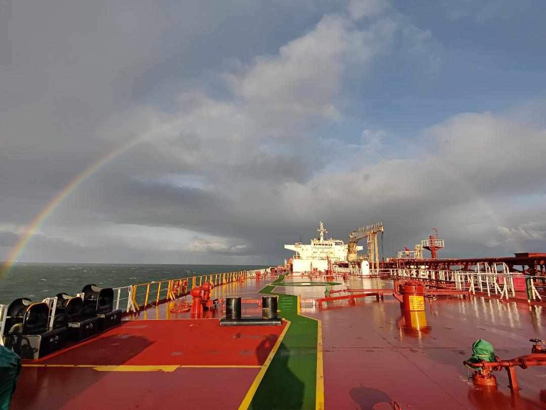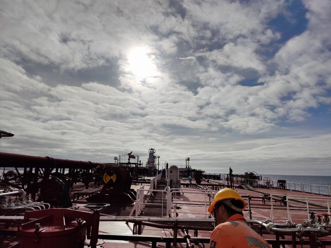 很快,我就遇到了我工作中第一个难题——晕船!早上起床时就感觉浑浑噩噩,早饭也吃不进去,去洗碗时还呕吐了。水手长向大副和船长汇报了我的状况,他们让我休息一天,先适应环境,还让二副给我拿了晕船药,并告诉我能坚持就不吃,不要形成药物依赖。孟加拉水手建议我多出去呼吸新鲜空气,有助于缓解晕船。全船的同事都在关心我,让我很受感动。虽然第一天真的吐的离不开垃圾桶,但在他们的帮助下我很快就适应了。也收获了克服晕船的经验:多呼吸新鲜空气,要吃饭多吃蔬菜和水果,严重时躺在床上休息就会很快得到缓解。