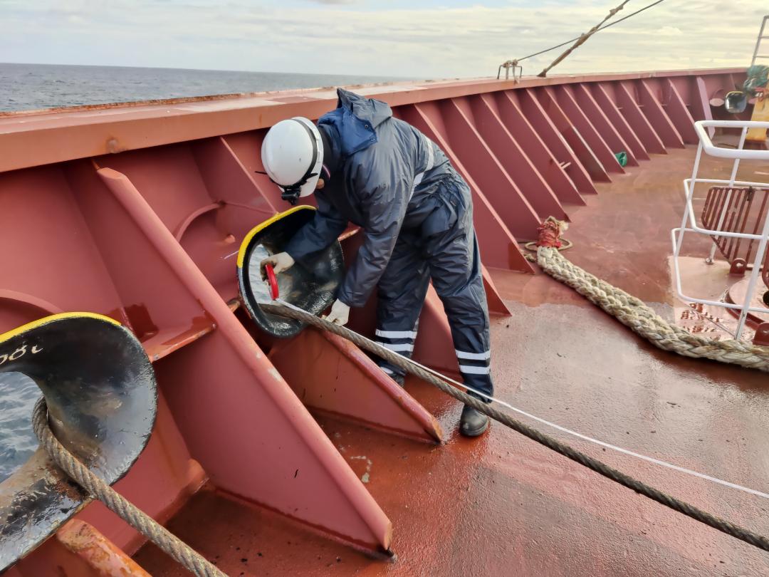 在船舷边迎接的大副和水手热情的接待了我们,并帮我们把行李搬到了房间。简单整理后,大副通知我一起去起锚。匆匆换上工作服后,我赶往甲板,内心充满了抑制不住的紧张和激动,对四周的环境十分好奇。大副在带我去船头的路上,向我介绍了船舶概况和安全体系规范。第一次起锚,大副让我跟在他身边,指挥水手长和水手进行规范的操作,并给我讲解了如何判断几节锚链,如何判断锚链方向,及时向船长报告起锚的情况。我深受震撼,才真正意识到我从学校中所学的知识与在船上的实际情况是多么的小巫见大巫。