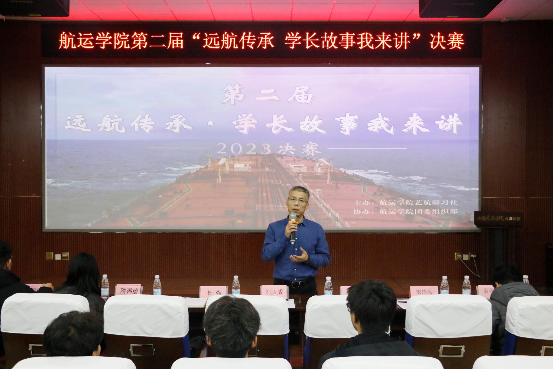 杜强在总结发言中表示感谢同学们的精彩讲述,让大家跟随学长们走过的航线,领略到他们在航行过程中遇到的美好风景和逸闻趣事,以及靠港后在异国他乡的风土人情,并鼓励大家跟随学长们的步伐,合理规划自己的大学生活、练就过硬本领,做好职业生涯规划,早日起锚扬帆,向海图强,助力国家航运事业发展。