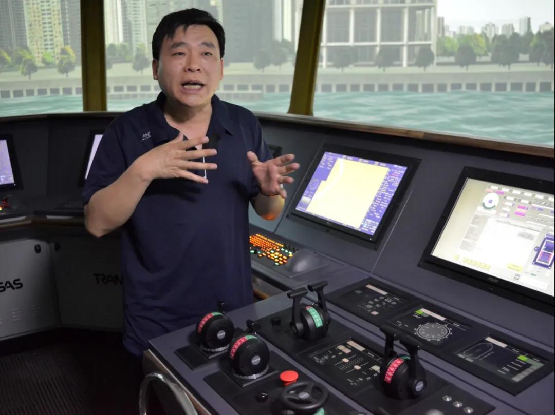 活动中,周连国船长向志愿者们逐一介绍了模拟器的各种船上设备,为了方便志愿者们理解,他把船上设备和路上运输载具的的设备相对比,详细说明了船上设备的在航行过程中对船的作用,他指出航运是现代重要运输方式,从上世纪我国航运事业不发达到现在的现代化航运,船舶设备和航海技术不断演变和不断进步,离不开一代代航海人的努力和建设,他勉励同学们一定要好好学习专业知识,为以后上船工作打好坚实技术基础。