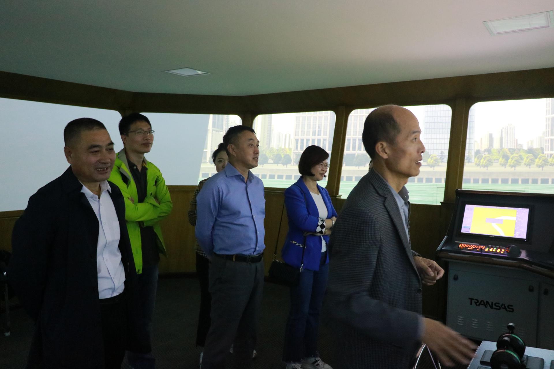 王明雨介绍了航运文化科普基地的资源、规模、运行及开展活动情况,并带领来访人员参观了航海模拟器、山东省船舶防污染重点实验室、气象观测场等科普场地。