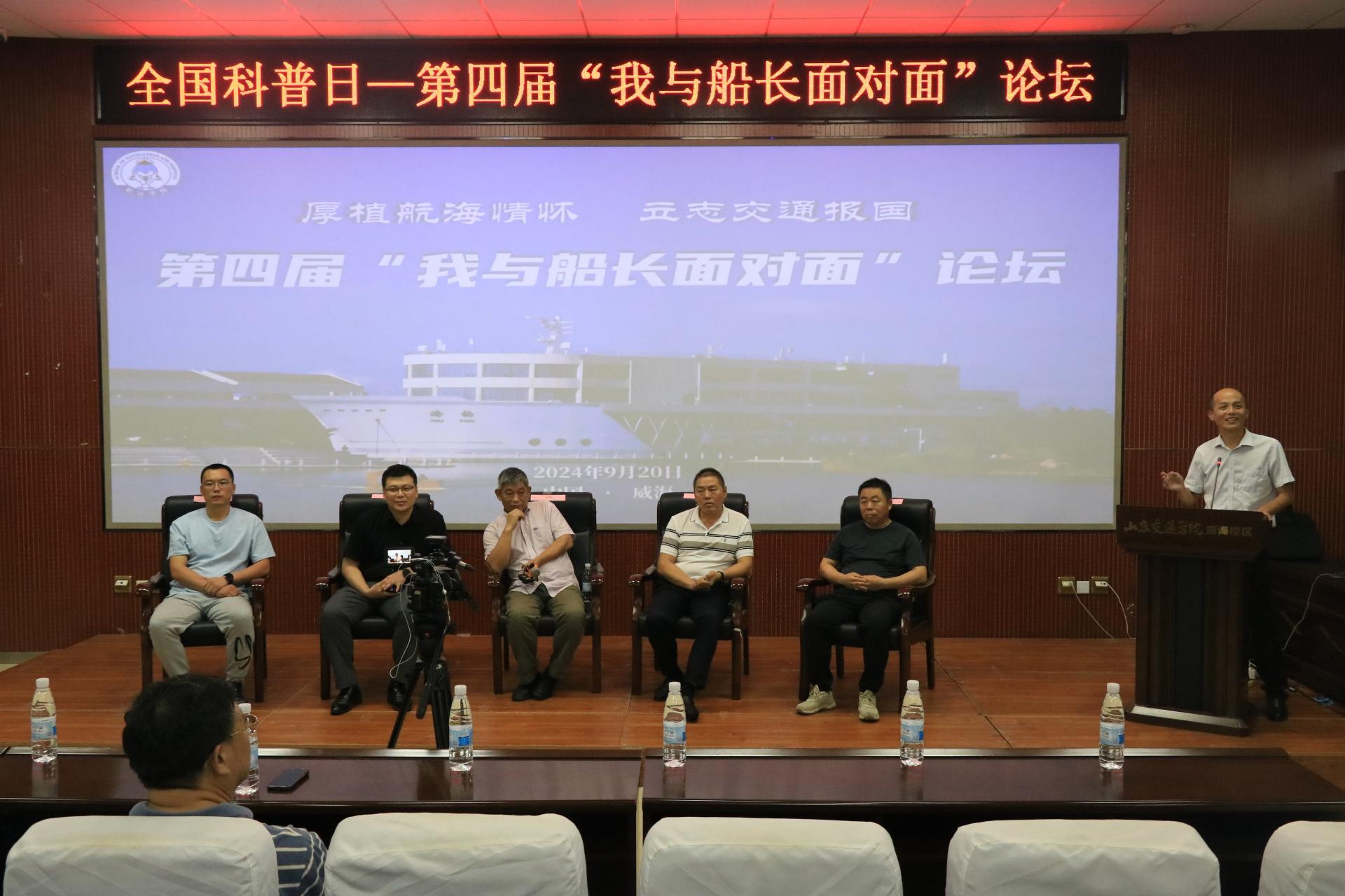 在威海校区第二报告厅举办第四届“我与船长面对面”论坛,自然资源部第一海洋研究所高级船长俞启军,自然资源部国家深海基地管理中心船舶部副主任、轮机长毛洪伟以及山东世华航运服务有限公司市场总监、轮机长刘海涛等应邀出席活动。