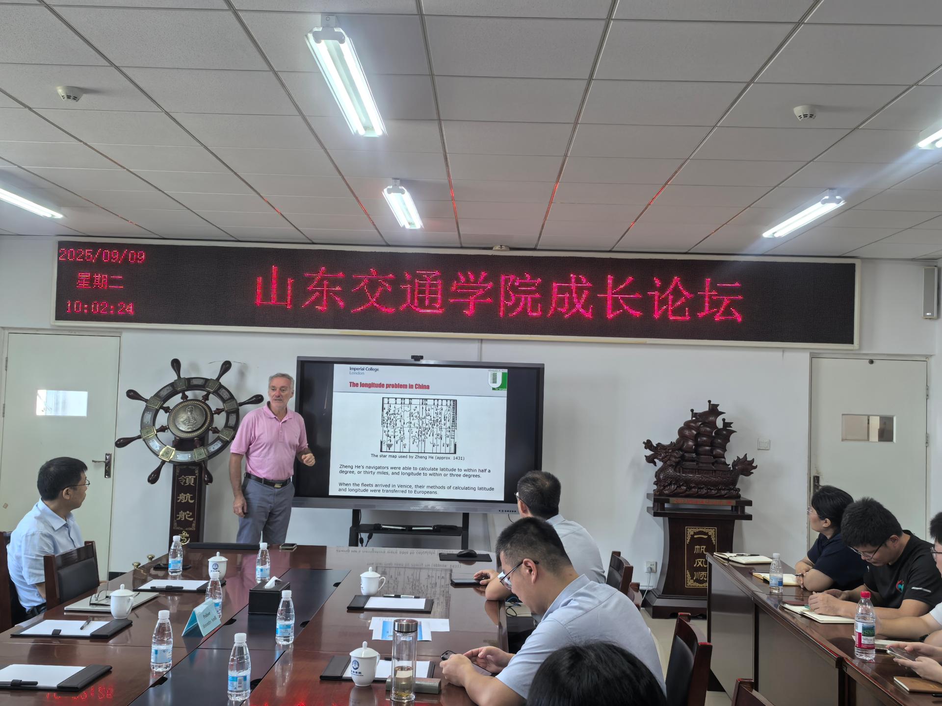 开展学术交流,并作题为《Longitude》的前沿学术报告。报告会在威海校区动漫花园