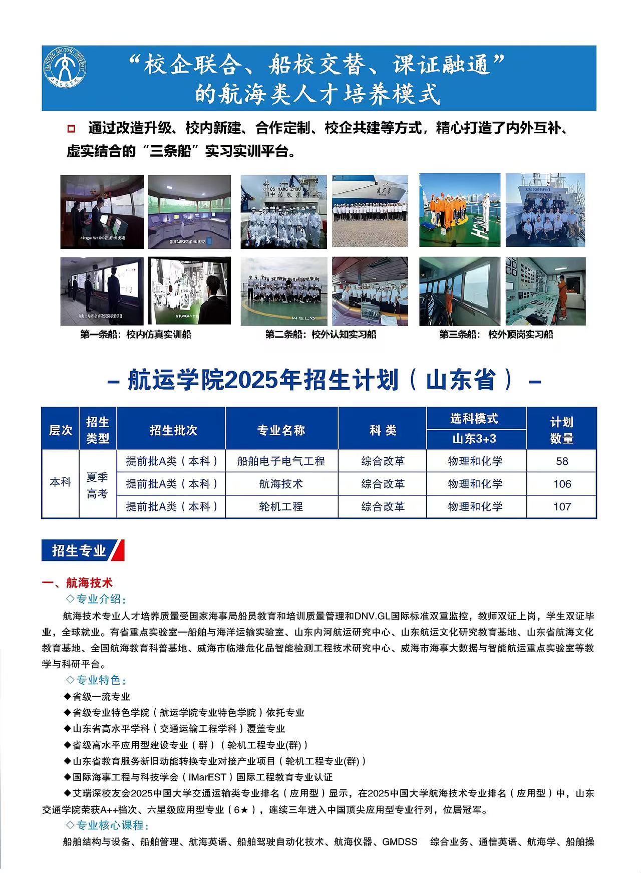 动漫花园 是山东省高等教育应用型人才培养特色名校立项建设单位,山东省人民政府与交通运输部共建高校。学校以“培养具有爱国主义精神、国际化视野,富有创新意识和实干精神的交通事业高级应用型专门人才”为目标定位,在济南、威海两地办学。威海校区位于美丽的海滨城市威海市,校园建筑风格独特,环境优雅。动漫花园 在威海校区,致力于培养符合国家教育方针和相关国际公约及国家法规要求,满足社会需要,有成长力的高质量航运人才,开设航海技术、轮机工程、船舶电子电气工程3个本科专业,具有一流的师资队伍、设施设备和管理水平,被誉为“山东省航海家摇篮”。